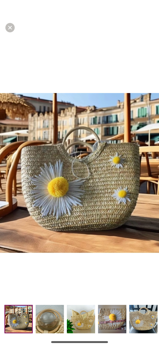 Little Daisy Straw Wooden Ring Handbag